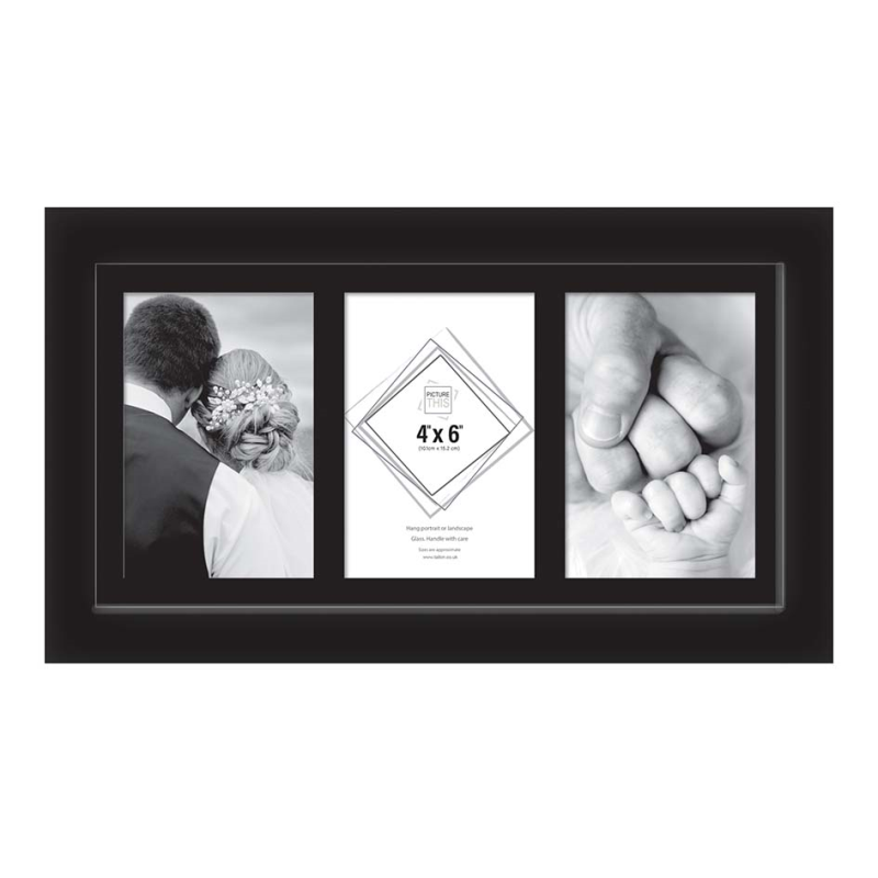 The Black 3 Aperture Photo Frame – 4″ x 6″ is a sleek and modern multi-photo frame designed to display three of your favourite pictures in one elegant layout. Its clean black finish suits contemporary, minimalist, modern and classic décor, making it ideal for showcasing memories, family photos or themed collections.