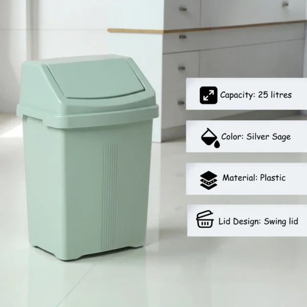 The Casa 25L Swing Bin – Silver Sage blends style, practicality and durability, making it a perfect waste solution for homes and workplaces. Featuring a smooth, easy-to-use swing lid, this bin ensures fast and hygienic waste disposal while keeping rubbish neatly out of sight.