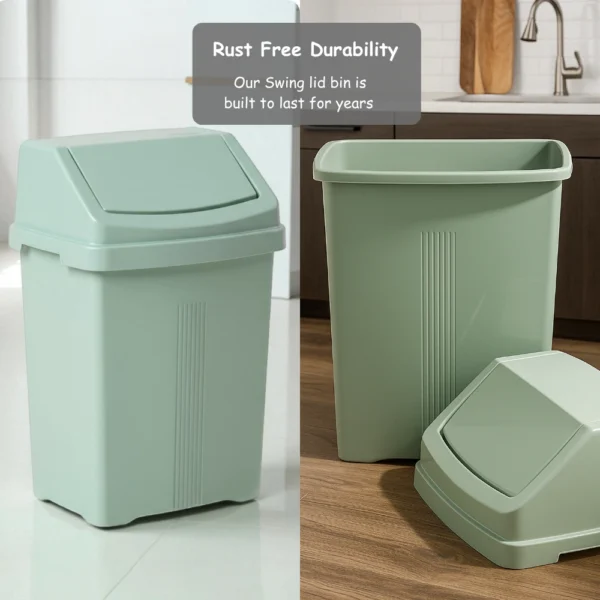The calming Silver Sage colour offers a soft, modern look that enhances contemporary kitchens, bathrooms, offices and utility rooms. Built from high-quality, easy-clean plastic, this swing bin is lightweight, sturdy and designed for everyday use.