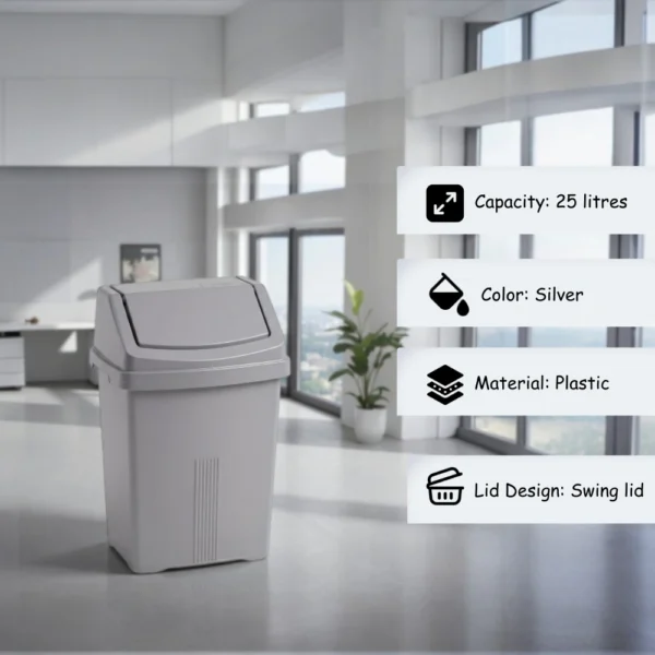 The sleek Silver finish adds a clean, contemporary look that blends effortlessly with modern kitchen décor, office environments, and utility areas. Built from durable, easy-clean plastic, this bin is lightweight yet strong enough to withstand everyday use.