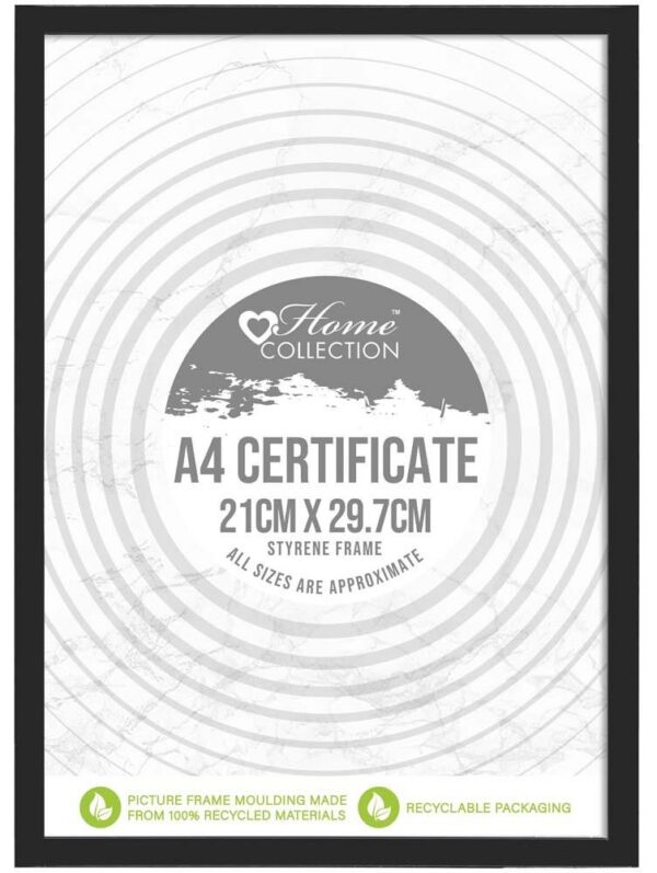 The London A4 Black Styrene Certificate Frame is designed for safe, lightweight and professional display of documents, certificates, signage and artwork. Featuring a shatter-resistant styrene front, it offers a safer alternative to traditional glass frames—ideal for schools, offices, hospitals, public areas and homes.